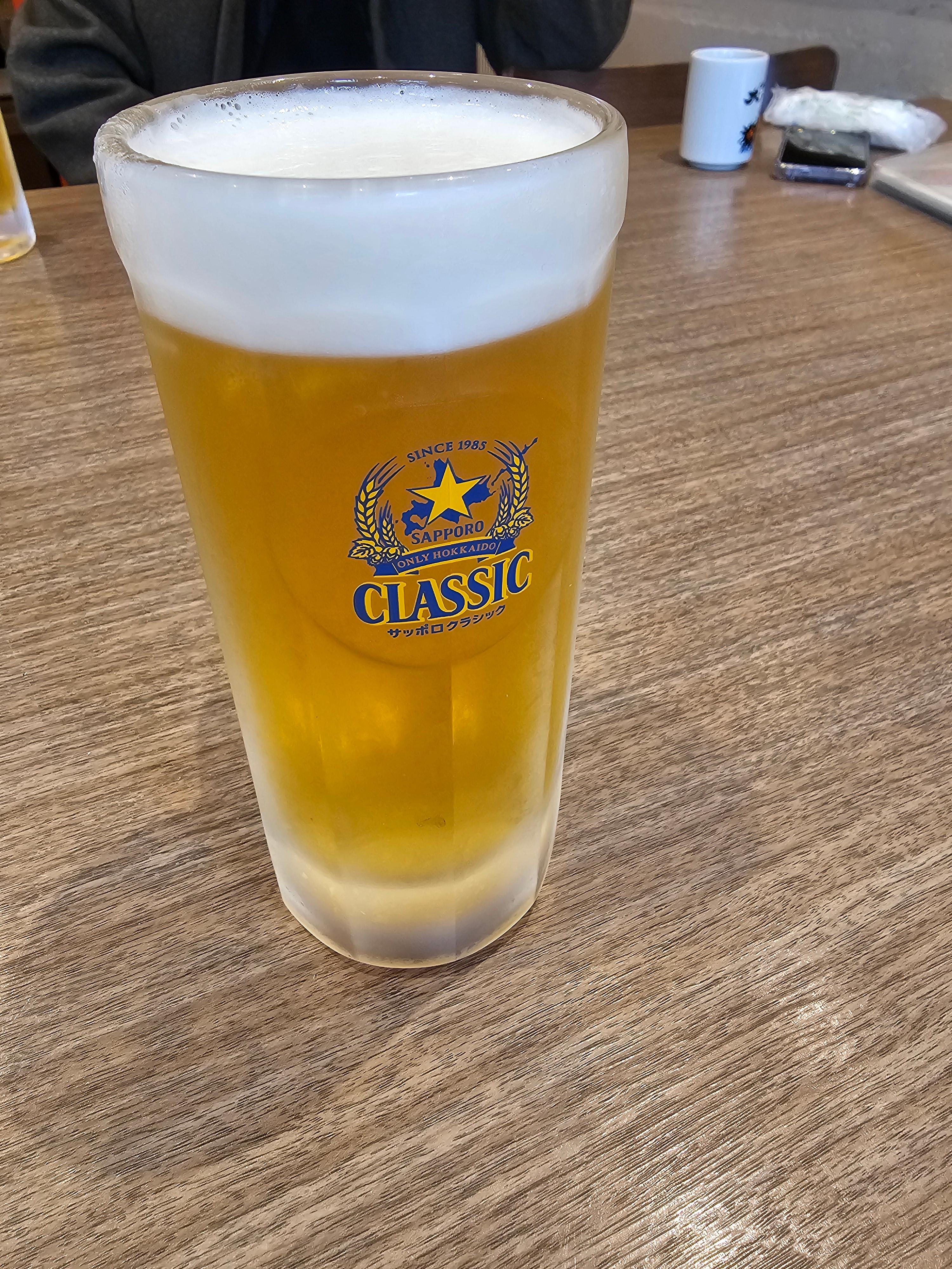 우선 우니를 맛보며 먹을 맥주를 한잔 시켰고요. 역시 북해도에서는 삿포로 클래식을 먹어줘야죠~