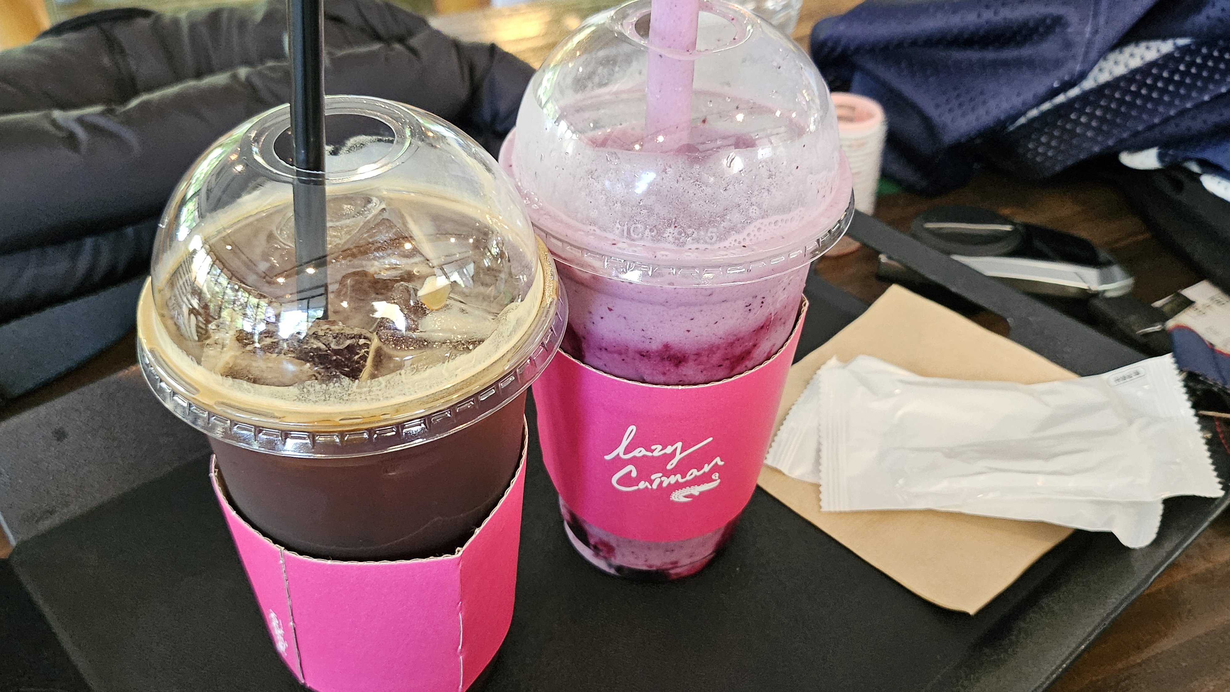 저희는 아이스아메리카노와 블루베리요거트스무디를 시켰습니다. 아까 제가 분명 가격이 꽤 비싼 편이라고 얘기를 드렸는데 음료 맛이 너무 맛있어서 하나 더 사 먹고 싶을 정도였습니다. 특히 블루베리요거트스무디는 근래 먹었던 것 중엔 손가락 안에 드는 맛이었어요.