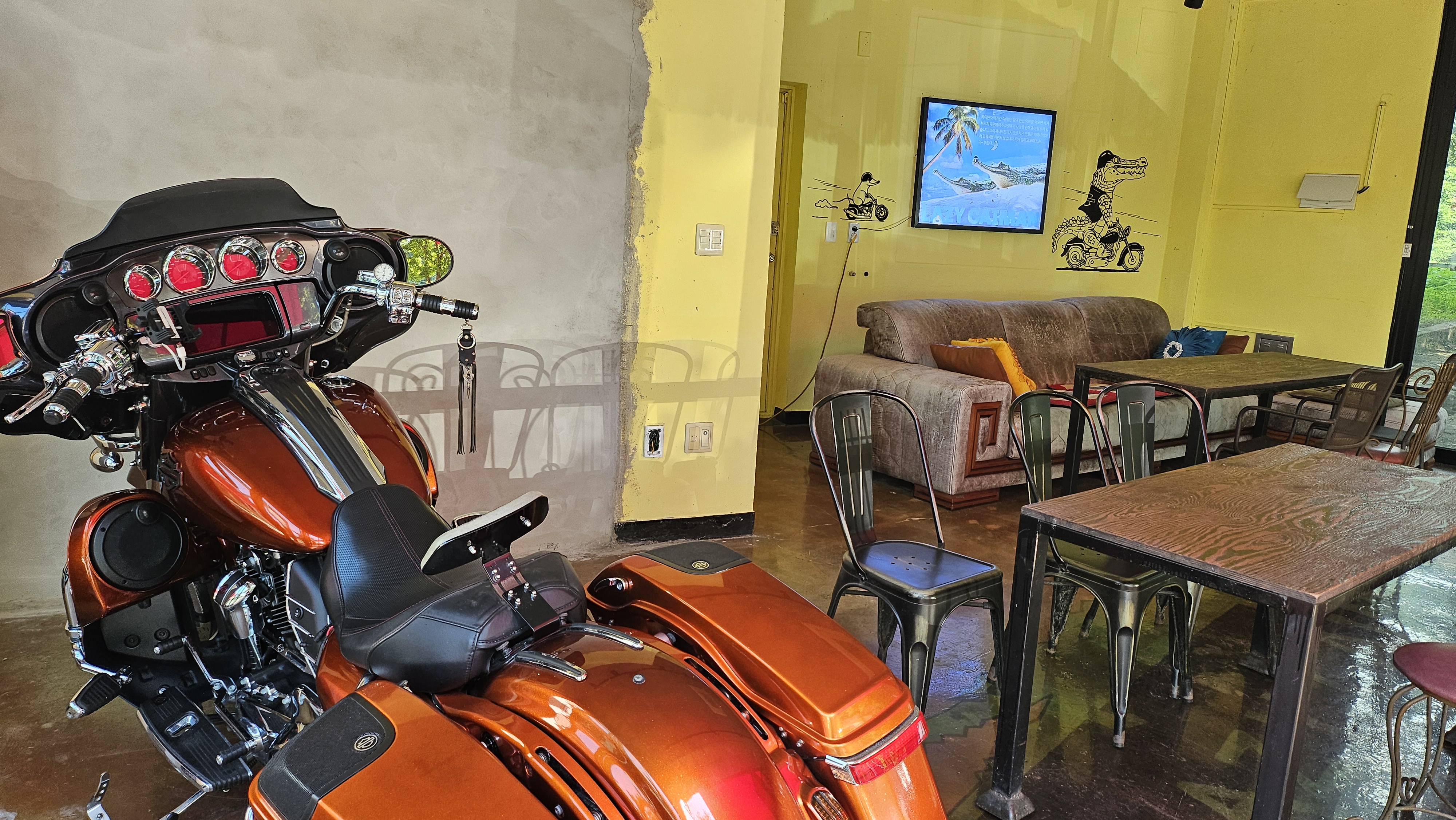 바로 옆에는 할리 오토바이 한 대가 있는 별관 같은 곳이 있었는데 번호판이 있는 것으로 보아 사장님 바이크 일 것 같았습니다. 여기도 좌석 및 분위기는 좋았으나 에어컨이 없었던 관계로 사진만 찍었습니다.