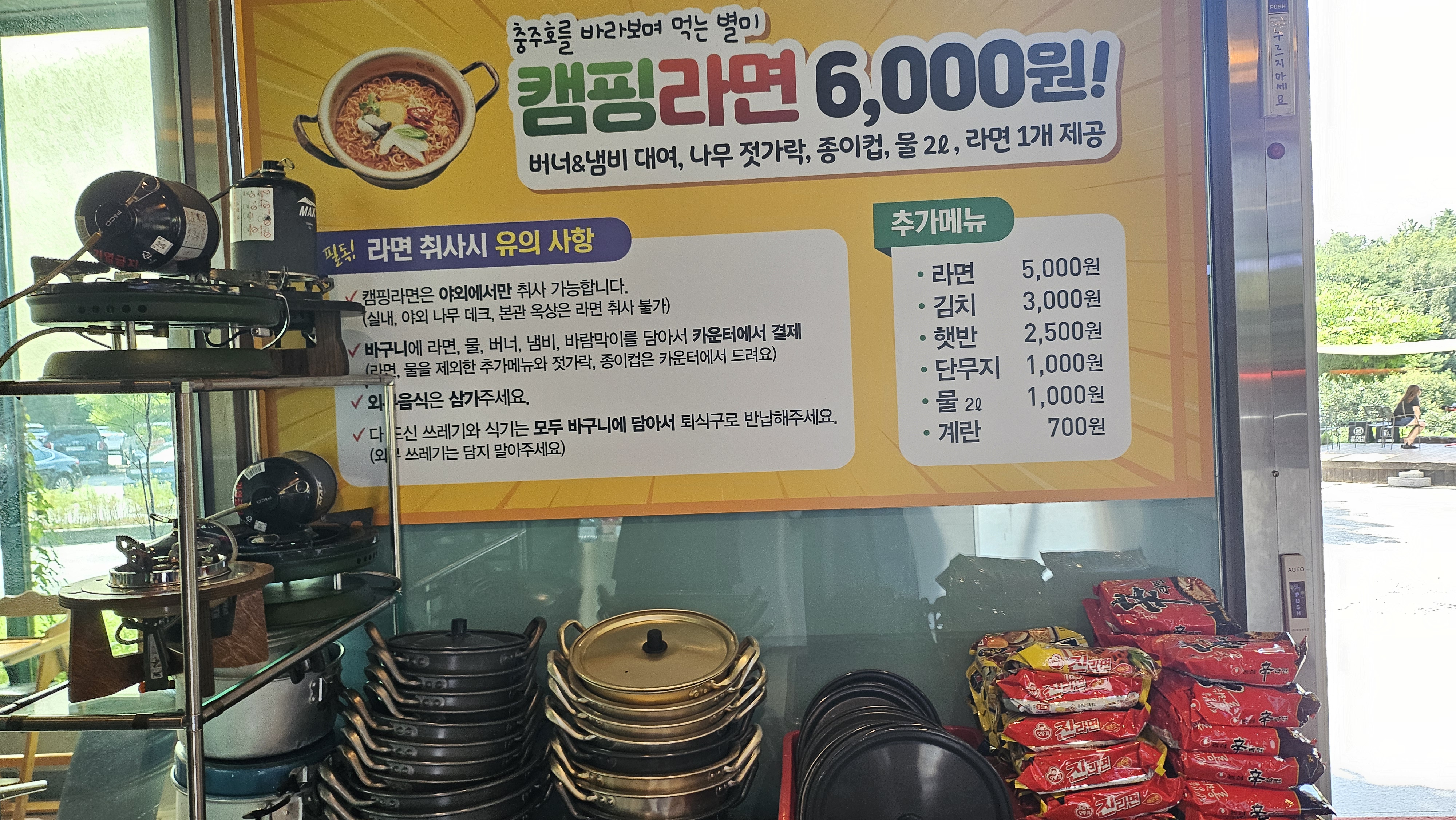 충주쪽이 캠퍼들의 캠핑성지로 유명한 곳이 많은데 게으른 악어에서 경치 좋은 곳에서 먹는 캠핑라면을 판매를 하고 있었습니다. 캠핑을 하지 않아도 간접적으로 캠핑분위기를 느낄 수도 있고 라이더들은 출출한 배를 채울 수도 있어서 정말 좋을 것 같았어요. 가족방문객들도 많아 애기들을 위한 작은 미니게임기까지 비치가 되어있는 부분이 여러 손님들의 니즈를 충족시켜주고 싶어 하시는 사장님의 마음이 보였습니다.