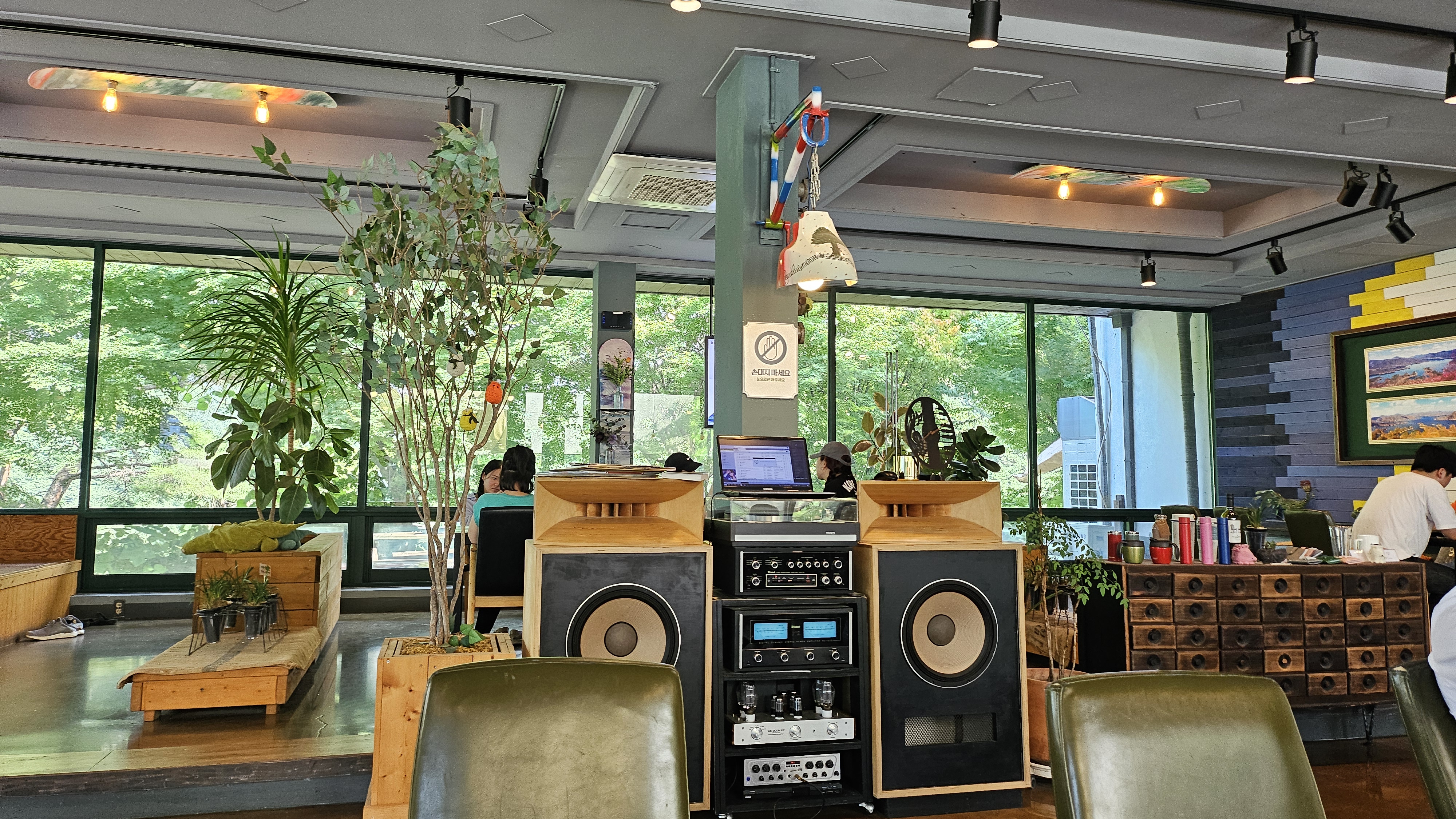 좌석은 꽤나 다양하게 준비가 되어있었는데 신발을 벗고 앉은 형태에 좌석도 있었고, 사진에는 없지만 경치가 정말 좋은 야외좌석도 많이 있었습니다. 날씨만 덥지 않았으면 야외좌석으로 앉았을 텐데 역시 더위엔 장사 없네요.