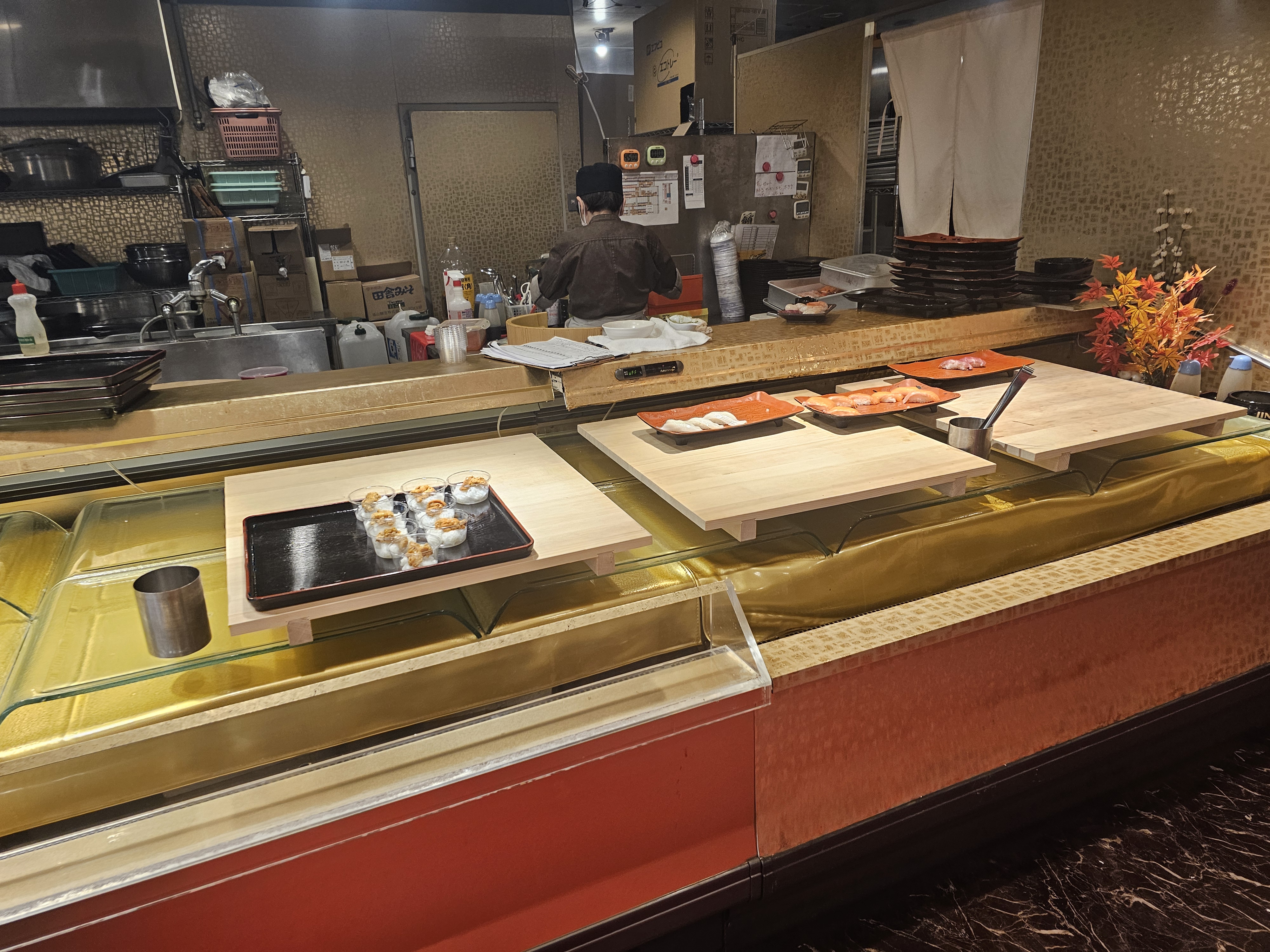 그 외 소소하게 초밥과 회도 보여서 맛을 봤는데 해산물들이 다 신선해서 맛들이 대부분 상타치였어요. 그림에는 없지만 김치랑 한국 반찬들도 꽤 있어서 음식을 먹을 때 리프레쉬할 수 있어서 좋았습니다.